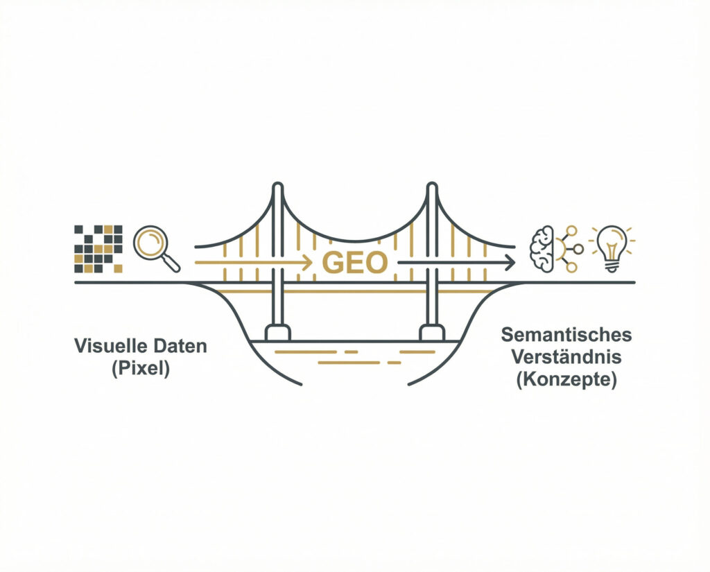 Dieser Wandel von SEO zu Generative Engine Optimization (GEO) erfordert eine völlig neue Sicht auf Ihre visuellen Assets. Bilder sind nicht mehr nur Dekoration, um Menschen zu begeistern, sondern semantische Beweise, die eine KI benötigt, um Ihre Behauptungen (z. B. „Rooftop-Pool“ oder „ergonomischer Arbeitsplatz“) mathematisch zu verifizieren.