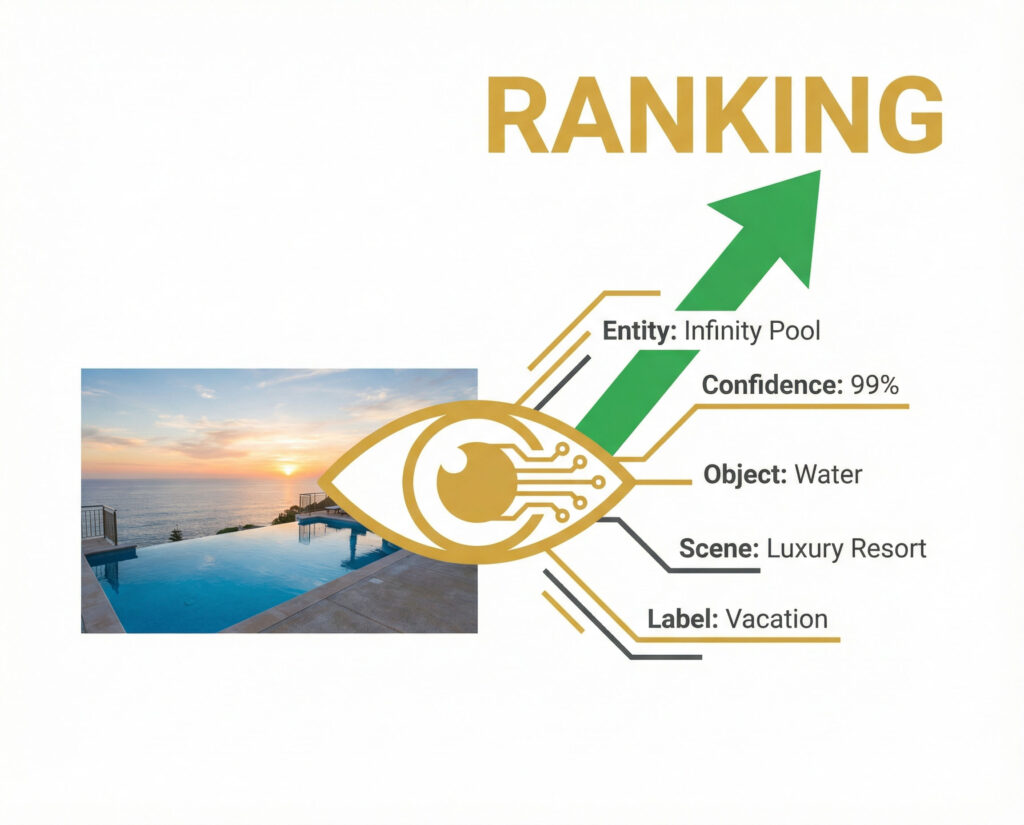 Für Wellnesshotels bedeutet dies: Ein Bild eines Pools muss visuell eindeutig die Merkmale eines „Infinity Pools“ (verschwindende Kante, Horizont) aufweisen, damit die KI es korrekt labelt. Künstlerische, abstrakte Aufnahmen können von der KI oft nicht korrekt decodiert werden und sind daher für SEO weniger wertvoll.19